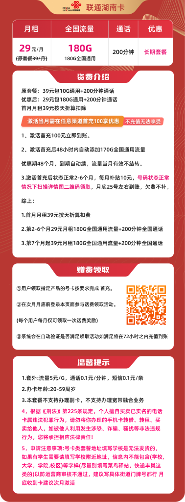 未经允许不得转载:湖南流量卡 » 湖南联通流量卡办理指南:半年优惠期29元180G,激活流程与合约规则说明